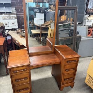 Cherry Kneehole Desk/Vanity with Attached Mirror