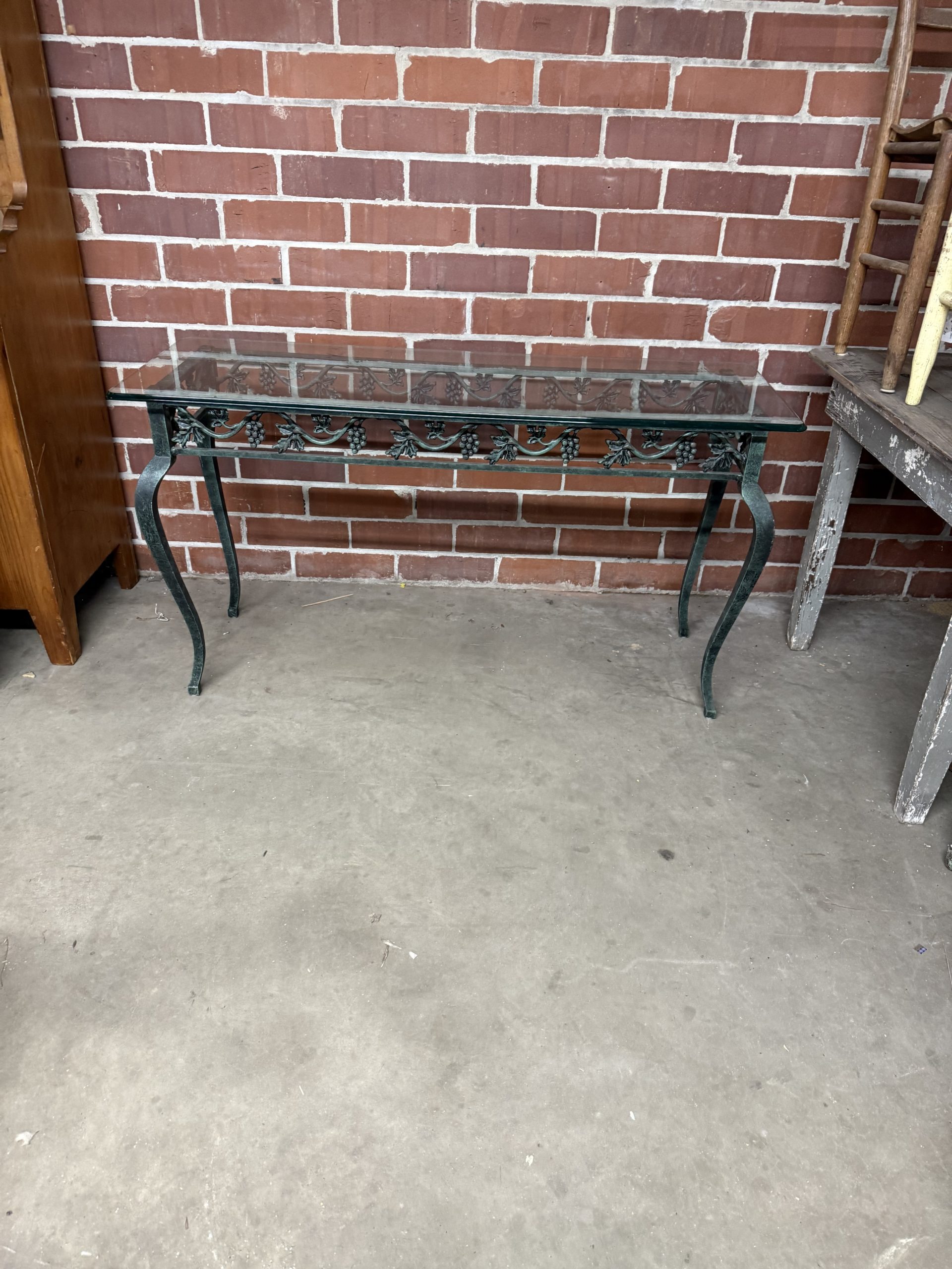 Grape & Leaf Design Glass Top Metal Sofa Table (Not Antique)